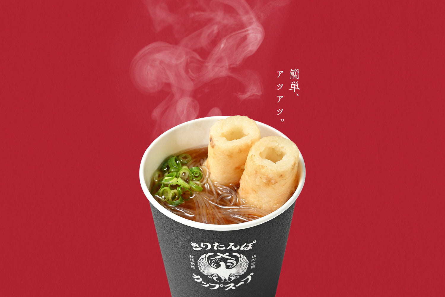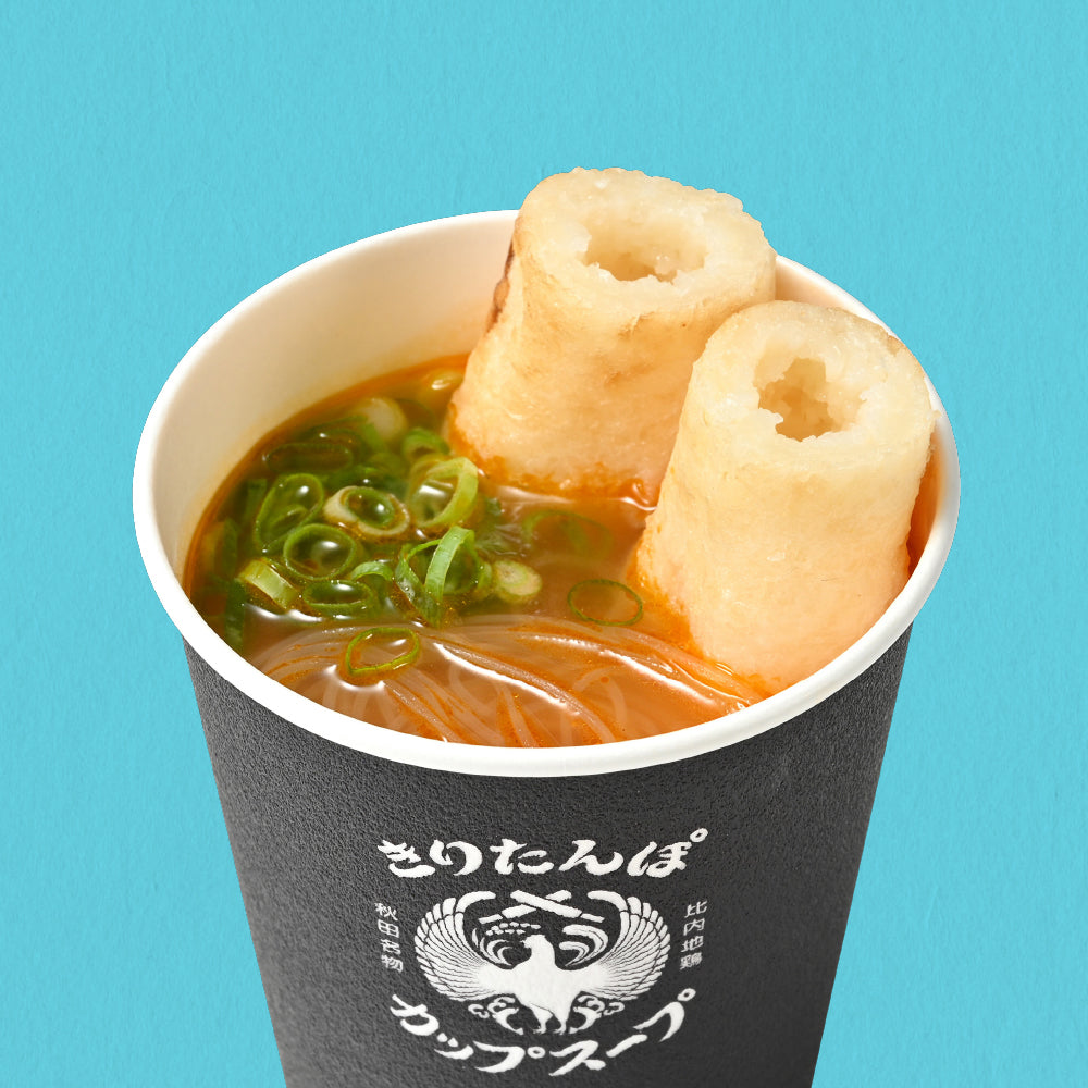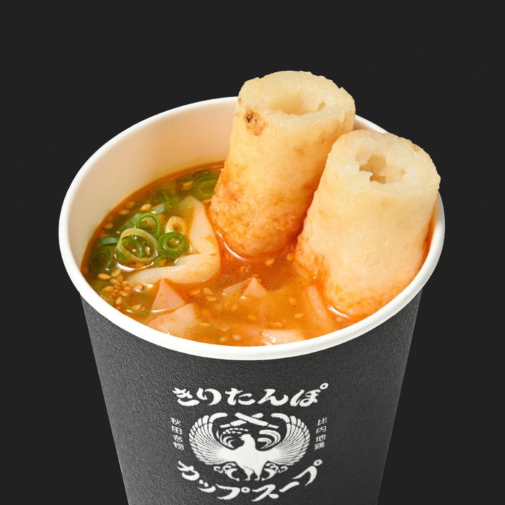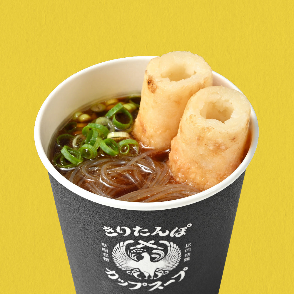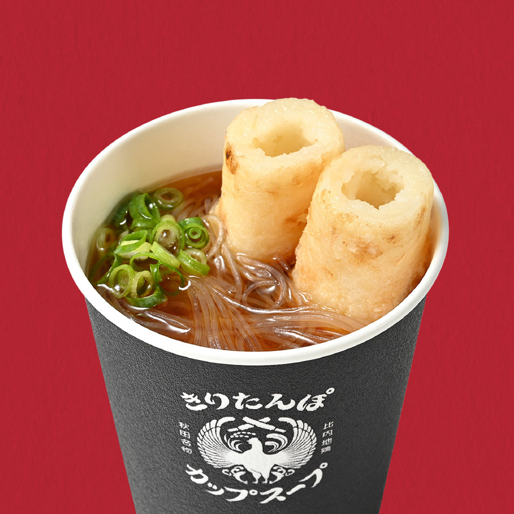 きりたんぽを手軽に自宅で食べられるようにしたい。その想いから「きりたんぽカップスープ」を開発しました。きりたんぽをチンして、お湯を注ぐだけで簡単にお召し上がりいただけます。持ち運び簡単で、お土産や、お昼ごはんのお供に、おなかがちょっと空いたときなど、様々なスタイルでお召し上がれます。