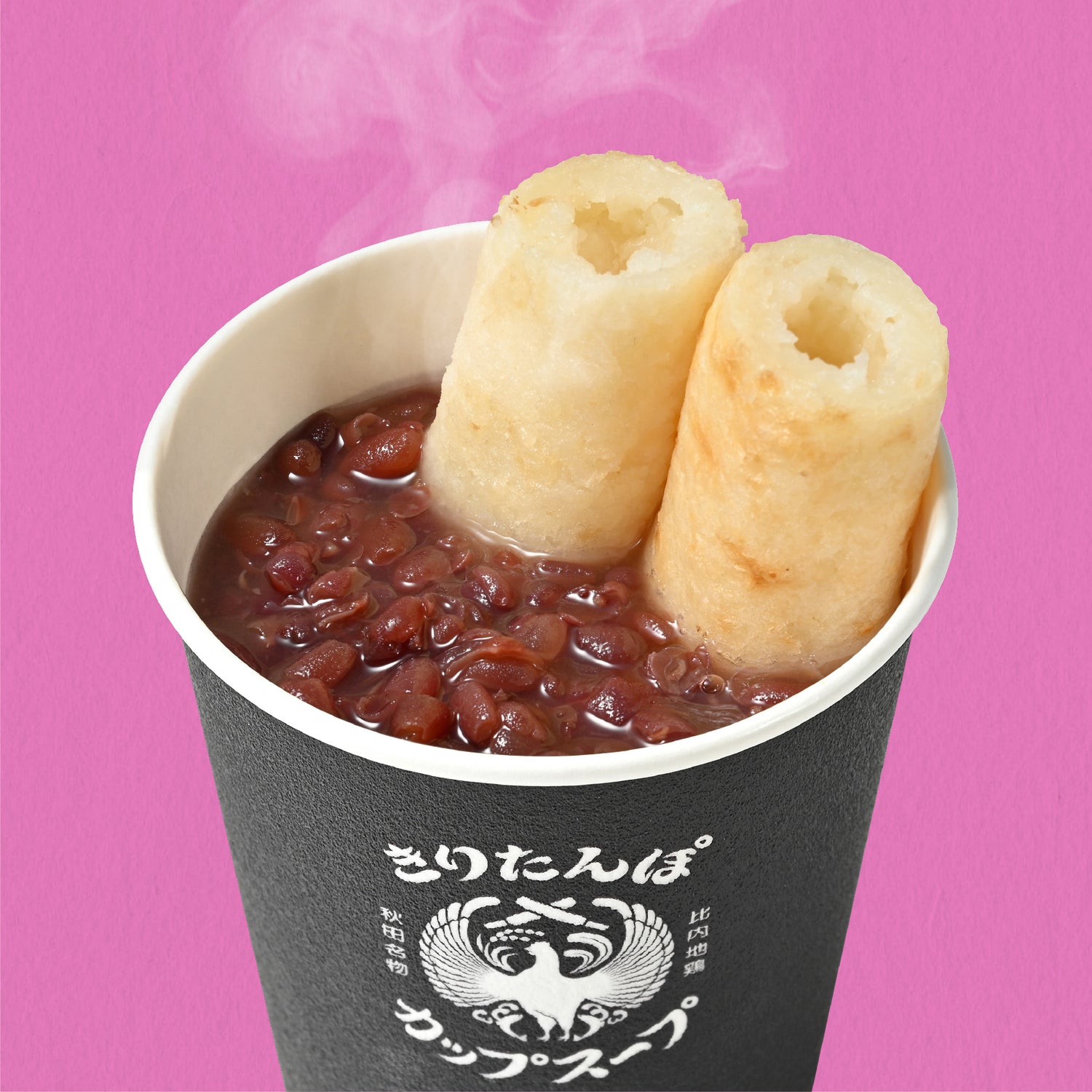 ⾁厚のきりたんぽ”を特製のつぶあんで「おしるこ」として⾷べる⼀品。